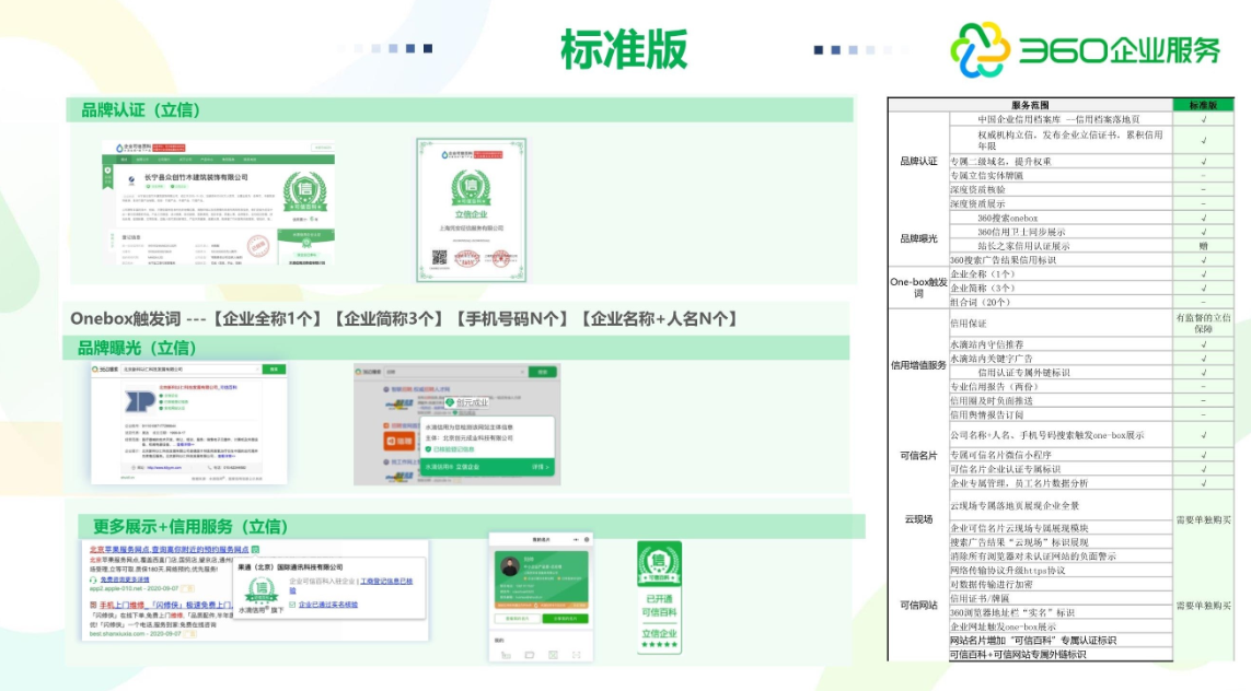 360企业可信百科是什么?企业可信百科是为守信企业打造互联网场景下的一款守信激励产品。可以极速开通展示企业可信名品,自主编辑,让守信企业脱颖而出,拥有企业可信名...